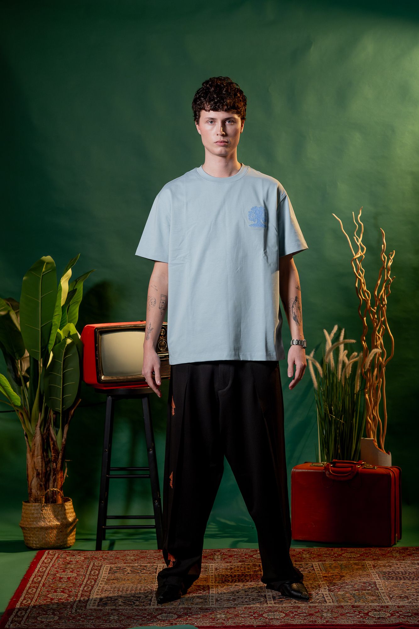 Crafted from 100% premium cotton in a standout light blue, this tee offers a soft, heavy, breathable feel and a relaxed, loose-fitting silhouette for effortless everyday wear.